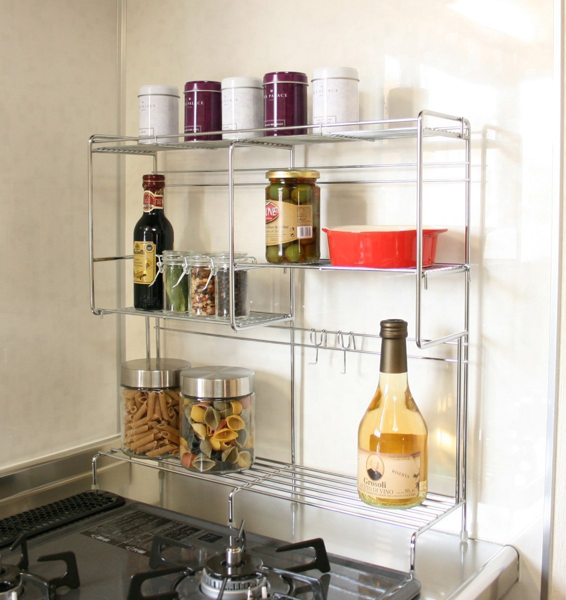 Kitchen tools also seasoning also collectively housed stove side rack (two shelf two-stage hook)