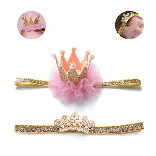 JIMUKEE Baby Girl Birthday Sparkly Crystal Crown Headband Princess Glitter Tiara Hair Accessories With Gift Box Set of 2
