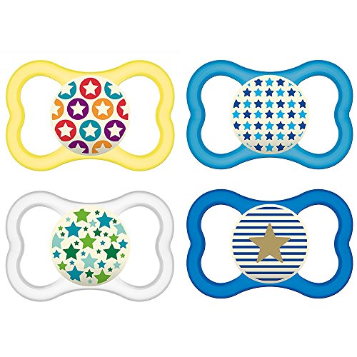 -. Title : MAM Air NIGHT Silikon Schnuller 16+ MAM Air Night Boy Mix // 4er Set // inkl. 2 Sterilisiertrasportboxen