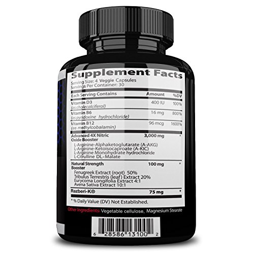 Complete 30 Day Supply Contains TWELVE Premier Ingredients Including THREE Different Arginines and Citruline for Ultra Results; Vitamin D3, Vitamin B6, Vitamin B12 and Herbs like Tribulus and Fenugreek; Increased Nutrient Absorption for a Healthier and 2.0 Version of You.
