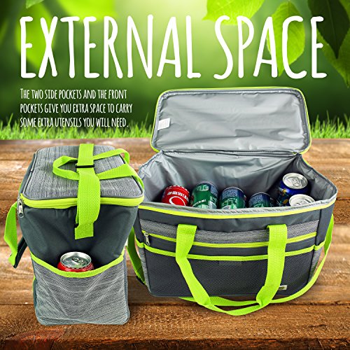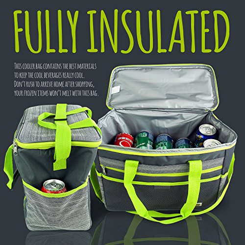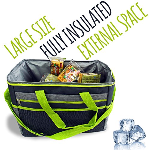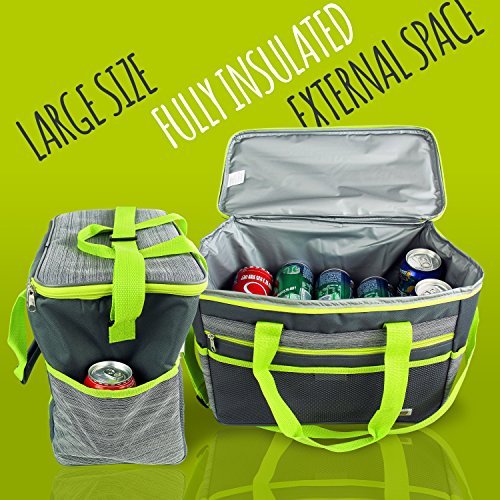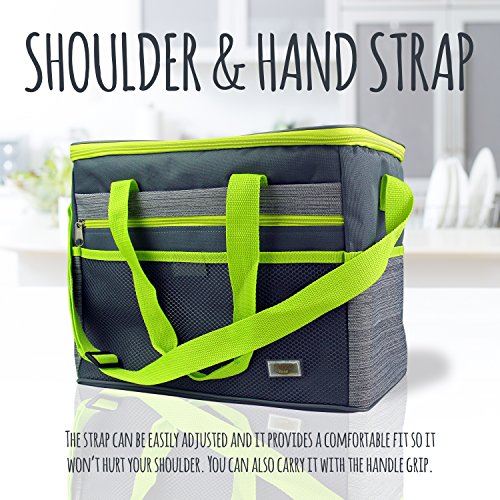 -. Brand : Happy To Go -. Color : Grey, green -. EAN : 0637825609738 -. Feature : ADJUSTABLE, CUSTOM DESIGN - Functional, yet stylish with adjustable straps that provide a comfortable fit. Or use the handle grip to fit a variety of uses. Size: 14" x 7.4" x 10.6" / LEAK PROOF, FULLY INSULATED - This cooler bag will keep items cool and liquids won't leak out. Waterproof inside and out. Use it for grocery shopping to keep frozen items from melting on the way home. / HUGE, MULTI-FUNCTIONAL - The two side pockets and the front pockets give you extra space to carry packaged food, utensils, cell phone, book for the beach or whatever you need for work days or fun days. / DURABLE, EASY TO CLEAN - Made of easy-clean 600D and PEVA to resist odor, mildew and mold; if you spill something inside, simply wipe it up. It has a sturdy zipper that won't jam or rip away from the fabric. / MONEY BACK GUARANTEE - Buy today with full confidence. If in 30 days you aren't thrilled with this insulated bag, return it for a full refund of your purchase price. -. Label : Happy To Go -. Manufacturer : Happy To Go -. ProductGroup : Kitchen -. ProductTypeName : KITCHEN -. Publisher : Happy To Go -. Studio : Happy To Go -. Title : Durable Insulated Large Leak Proof Lunch Cooler Bag - Best for Picnic or Outdoor Activities -. UPC : 637825609738