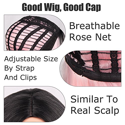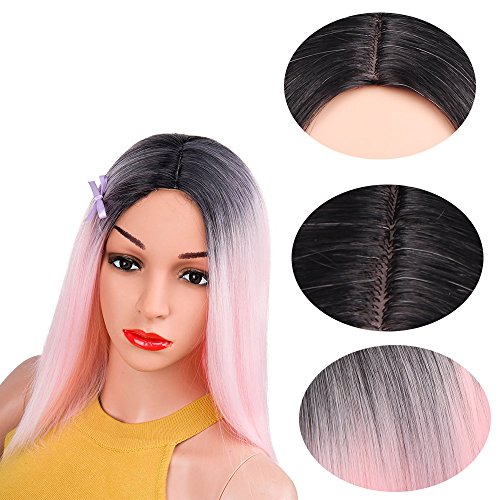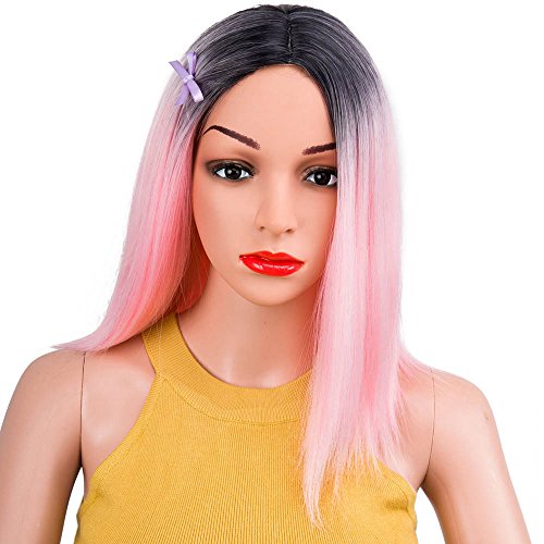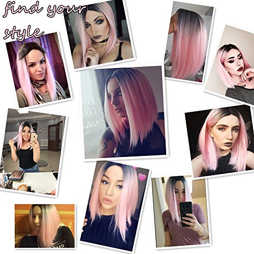 AISI HAIR Ombre Pink Wigs Straight Short Length Wigs for Women Middle Part Wigs Dark Roots Heat Resistant Synthetic Wigs