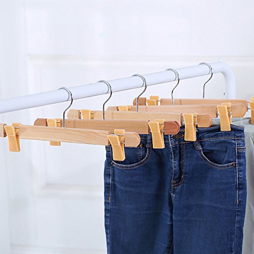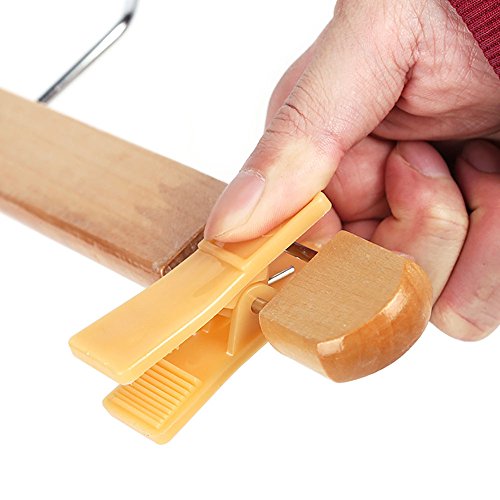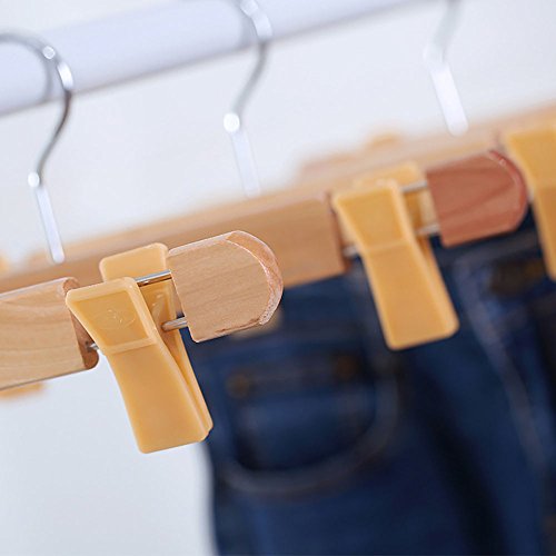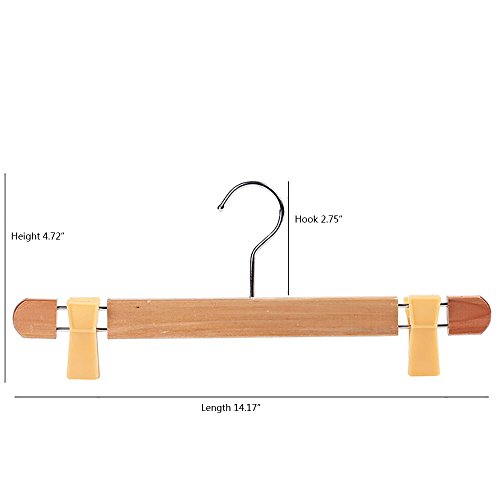 -. Feature : Material: The solid wood creates a sturdy base which is perfect for heavy suits. / Design: Polished chrome hook and ultra strong clips, perfect design for outdoor Air Drying. / Protect your clothes: Snag free splinter free wood, glossy natural finish feels smooth to touch. / Space-saving and Well Organization: Space-efficient design maximizes storage space and make your closet neat. / Size&Qty: Length: 14.2", Height: 4.7", Width: 0.8"; Pack of 5.