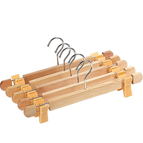 -. Title : SP.R.Ing fever Natural Finish Wooden Hanger with Chrome Hook 2-Adjustable Clips for Pants Skirts, 5-Pack