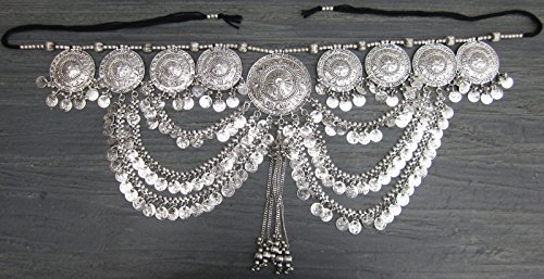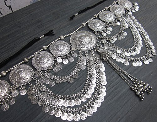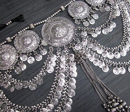 Beaded on cord with metal coin chains and fine embellishments - all metal vintage oxidized silver plated