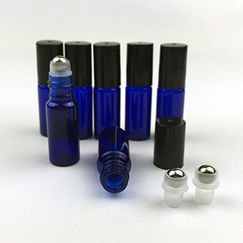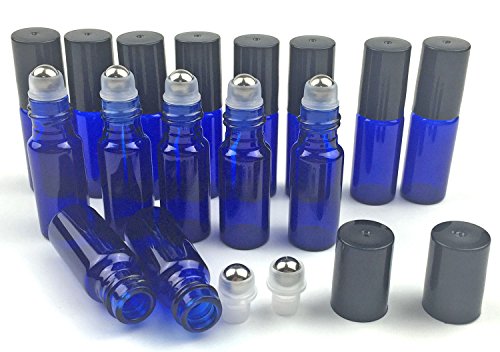 5ml Glass Roller Bottles-Set of 15 Roll Bottle With Metal Ball for Essential Oil,SYY8482; Aromatherapy,Perfumes and Lip Balms (Blue)