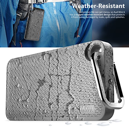 - Title : iLuv Aud Mini 6 (AUDMINI6) Slim Portable Weather-Resistant Bluetooth Speaker for iPhone, iPad, and other Smart Devices (Grey Carabineer)