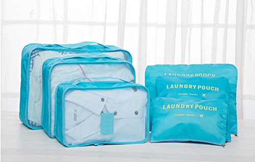 9Pcs Magik Waterproof Clothes Storage Bags Packing Cube Travel Luggage Organizer Pouch (Blue)