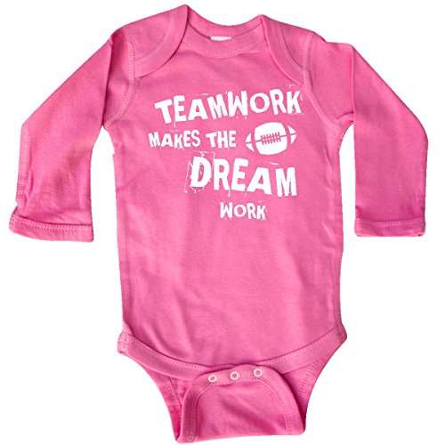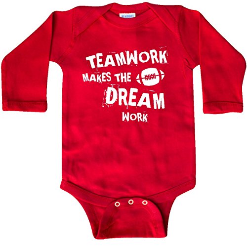 Product Description Motivational football Long Sleeve Creeper with silhouette football graphic says TEAMWORK MAKES THE DREAM WORK. Inspire team spirit. Great gifts for football players, fans and coaches. 0