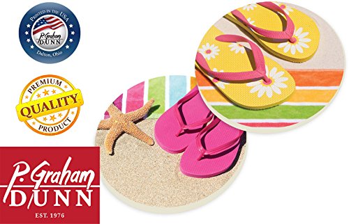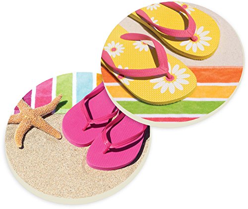 Flipflops and Starfish 2 Piece Ceramic Car Coaster Set