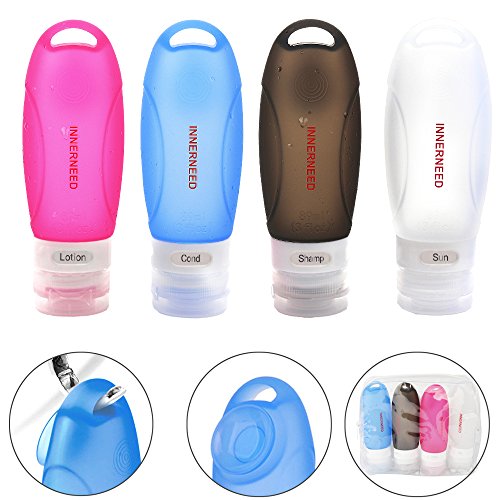 Leakproof FDA Silicone Travel Bottles Set Protable Squeezable and Refillable Bottle Container for ,TSA Approved Airline Carry-On(3oz,Pack of 4 ,Pink + Blue +...