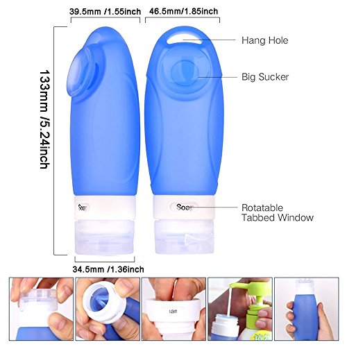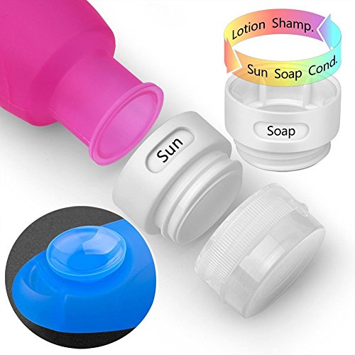 - Content identification: Switchable label, each travel bottle has pre-printed labels (Shamp./ Soap/ Lotion/ Cond./ Sun/ Empty) to identify liquid in the bottle. Different colors also can help you identify the bottle.