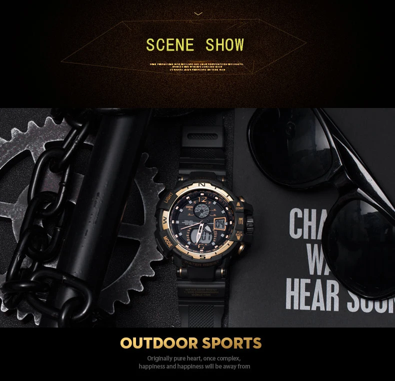Watch Design Feature:Men Sports Watches Dual Display Analog Digital Clock