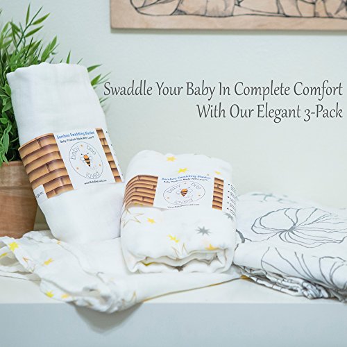 Best Baby Muslin Swaddle Receiving Blankets for Swaddling, 3 Pack, Organic, Hypoallergenic, FREE BONUS Bamboo Washcloth, Luxuriously Soft for...
