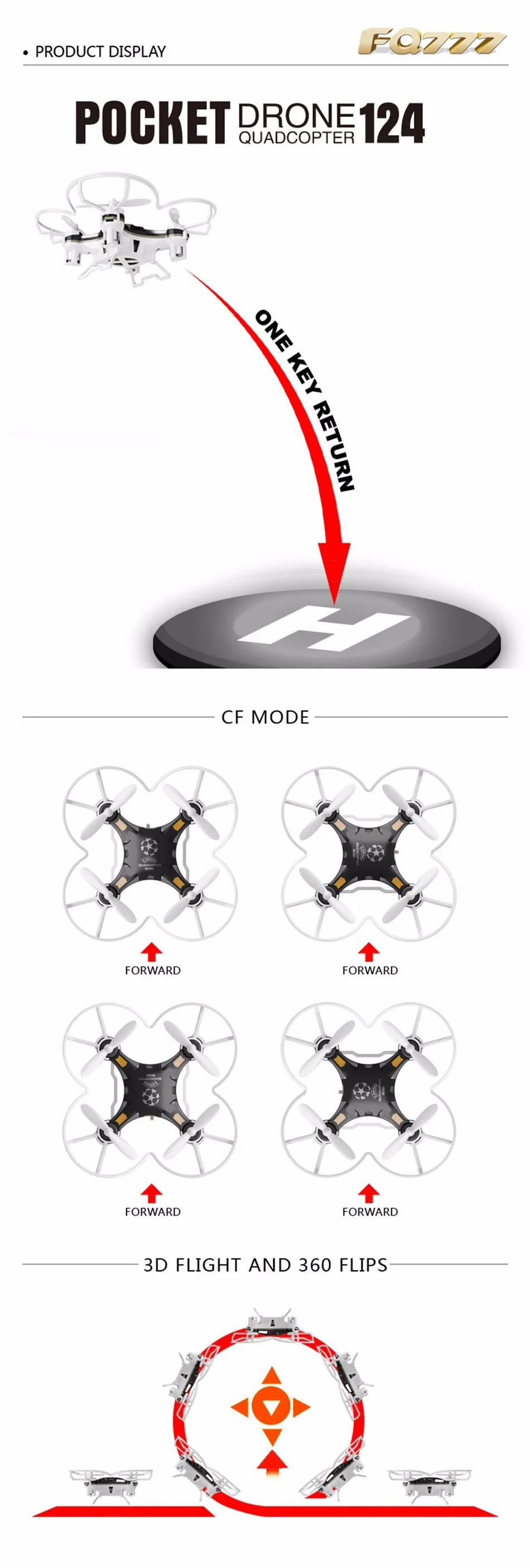 - 360 degree rolling function: The drone will flip forward / backward / leftward / rightward according to your instructions
