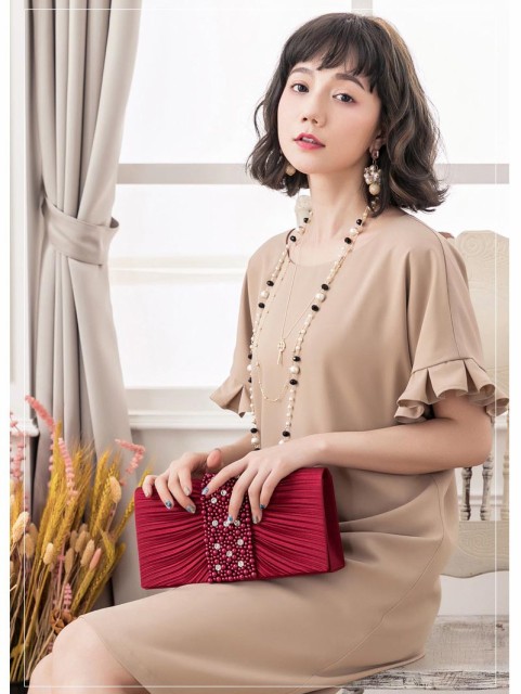 肩のデザインでパッと目を惹く華やかさのある一着。