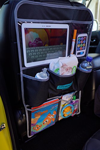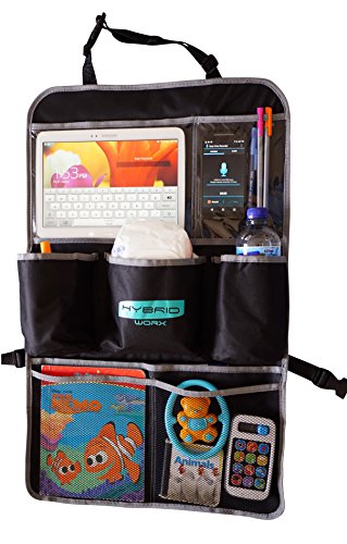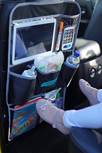 • Prevent your travel essentials from slipping under your seats! • Multipurpose: Organizer, Tablet/iPad holder, Smart Phone holder, Seat Protector and Kick mat.