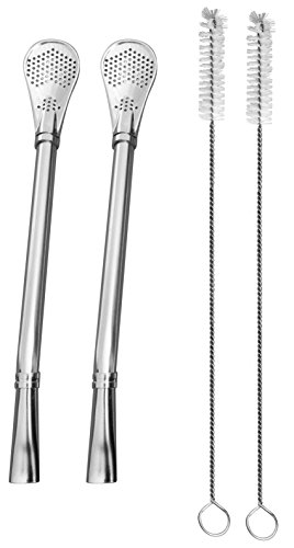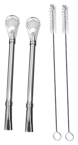 2 Yerba Mate Gourd Bombilla Filtered Straws Dependable Stainless Steel made to Filter Sediment -1 Cleaning Brush Drinking Straw For Gourd Loose Leaf Tea cocktail Infused Drinks FDA Safe 3 Piece Set