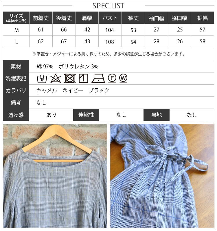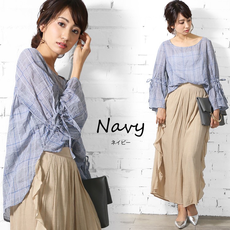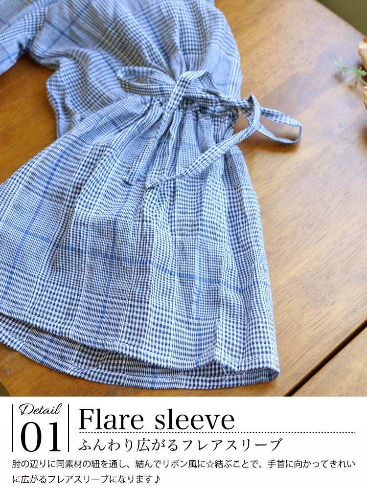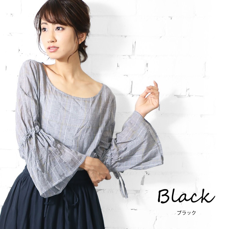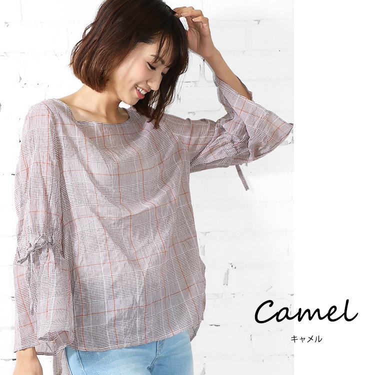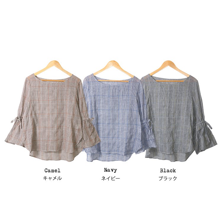 商品名:グレンチェック袖フリルトップス