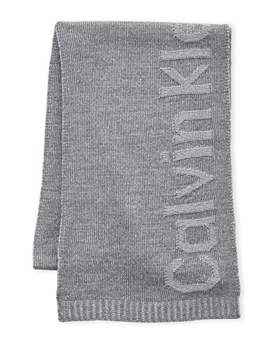 (Calvin Klein)/Accessories/Cold Weather Accessories/DIRECT FROM USA/Calvin Klein Men's Plaited Logo Scarf, Silver