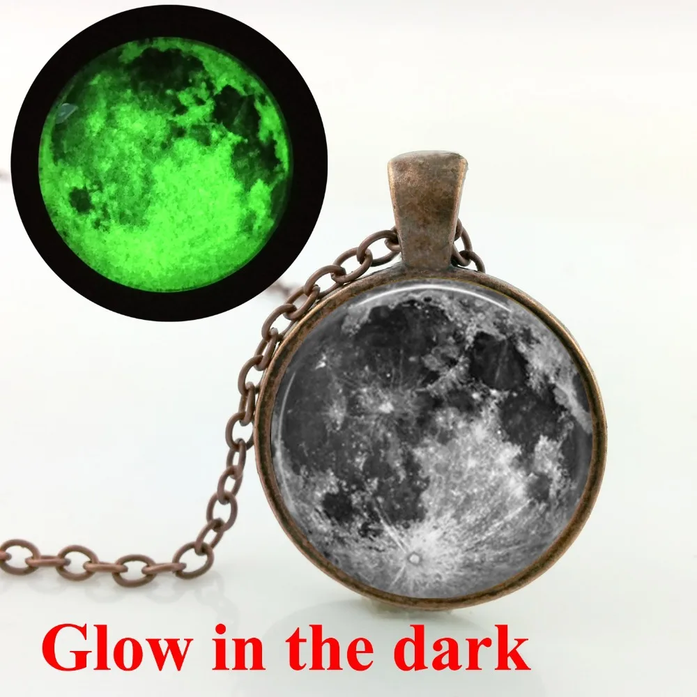Item:Full Moon Necklace Space Picture Pendant Glow Galaxy Jewelry