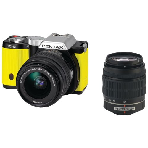 Pentax K-01 16MP APS-C CMOS Mirrorless Digital Camera with Dual Lens Kit 18-55mm, 50-200mm (Yellow)