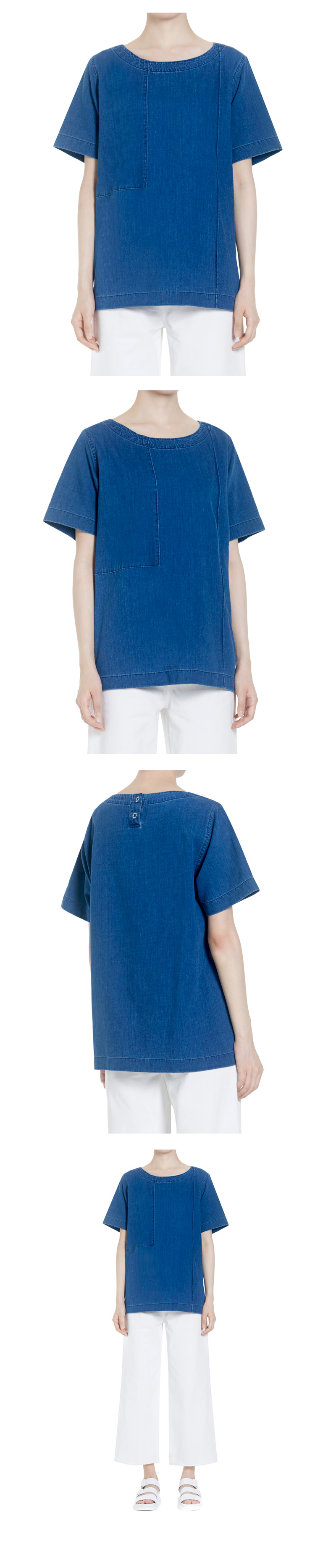 | - 핀턱과 스티치로 블록킹 효과를 준 데님 탑 - 5 OZ의 얇은 데님원단으로 사용 - 옆넥이 넓어 여성스러운 느낌 - 루즈한 실루엣으로 편안하고 가벼운 착용감 - 뒷넥 금속스냅 디테일이 시원한 느낌을 줌 - COTTON 100% | |