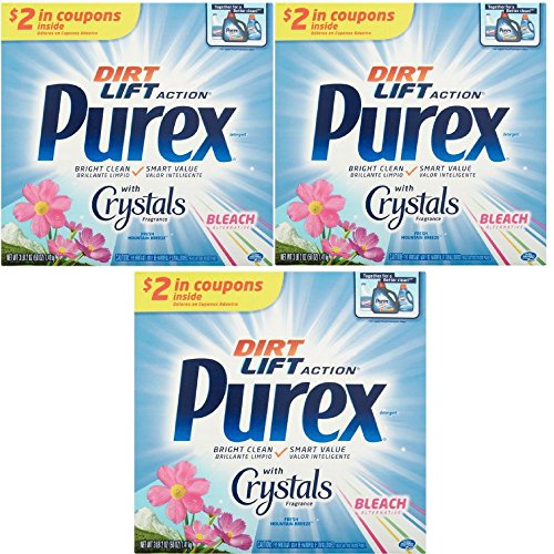 Studio : Purex Publisher : Purex Binding : Health and Beauty Product Description Purex Dirt Lift Action with Crystals Fragrance Fresh Mountain Breeze Bleach Alternative Detergent: Bright clean Smart value Biodegradable Phosphate free Safe for septic systems Purex Dirt Lift Action with Crystals Fragrance Fresh Mountain Breeze Bleach Alternative Detergent: Form Powders Manufacturer Part Number 9644 Container Type Box Model 9644 Brand Purex Features Biodegradable, Safe for septic systems, With Bleach Assembled Product Dimensions (L x W x H) 2.78 x 11.00 x 10.75 Inches 0