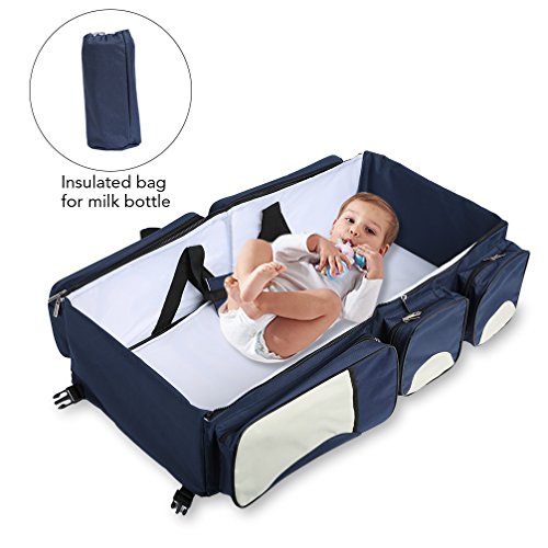 -. Feature : 4 functions in 1 of this baby shower gift baby travel bed and bag for parents: a necessary portable and convenient life saver for on-the-go parents, which combines with diaper bag, portable baby changing station, travel baby bassinet, play mad, etc. / This baby bassinet is with many intimate designs: a customized handle for carrying; an 8 bags for putting feeding-bottle, food, diapers, napkins, wipes, towels, etc. ; premium metal zipper puller, rustless, and burr-free; / It can be a shoulder bag, cross body bag, tote bag, or hanging on baby strollers. Perfect for all trips on automobiles, trains, or planes. Labor-saving and parent needn¡¯t hold baby all the time. Suitable for out trips. / Out is made of premium waterproof 300D oxford cloth; inside is made of 210D dacron; filler is made of PP board and premium silk wadding: safe, healthy, nontoxic, skin-friendly, ventilating, dirty-resistant, scratch-resistant / Expand size: 80x40x20cm/31x16x8''; folded as a diaper bag size: 40x40x15cm/16x16x6''; Light weight: 1.45kg/3.2lb; For baby from 0-24months; Maximum weight: 10kg/22lb ( you can enter our storefront for some other baby accessories )