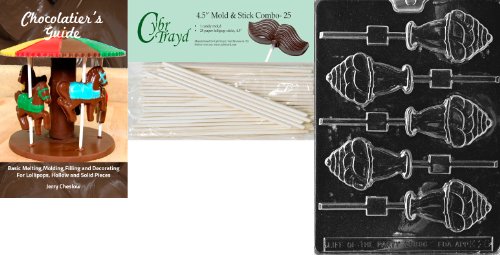 Kit contains a chocolate mold, paper sticks and Chocolatier's Guide. Manufactured for CybrTrayd, a trusted name in chocolate candy molds.