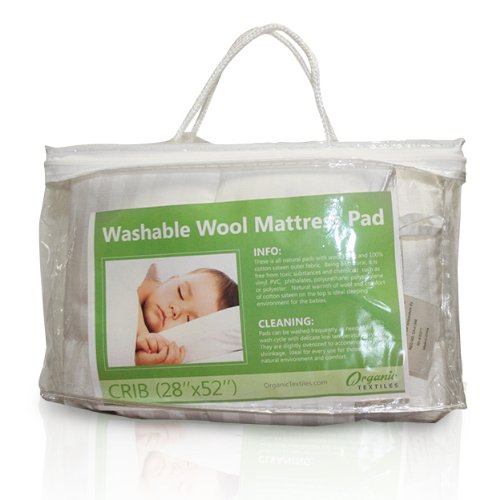 -. Feature : All natural mattress pads made from fine wool and 100% cotton sateen covering. All natural content. No dyes or chemicals, just organic purity. / Pads offer excellent comfort from the natural warmth of premium wool and soft feel of cotton sateen. / Washable in cold water. This eliminated the restrictions placed on wool products that have to dry cleaned or spot cleaned. / Flat pad that can be place on top or below fitted sheet. Free from polyurethane, vinyl, phthalates, BPA or other chemicals that are typically found in budget pads. / Comes in sizes to fit baby bedding. Crib (28x52), Porta Crib ( 26 x38), Bassinets / Cradles (18x36) co Sleepers (18x31).