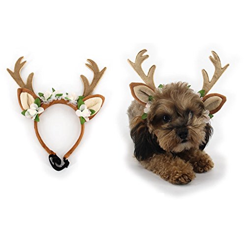 -. Title : BUYITNOW Pet Antlers Headband Reindeer Ears Flowers Headwear Christmas Cosplay Costume for Dogs Cats