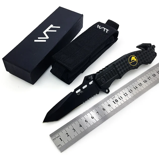 229 캠핑 접는 나이프 생존 전투 사냥 전술 포켓 나이프 EDC 멀티 도구 반 톱니 모양의 블레이드 Al + 스틸 핸들
