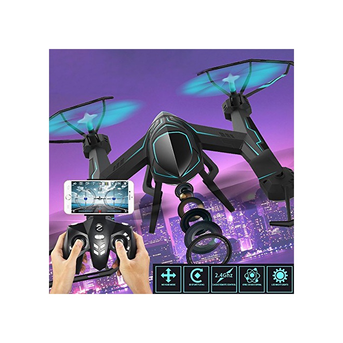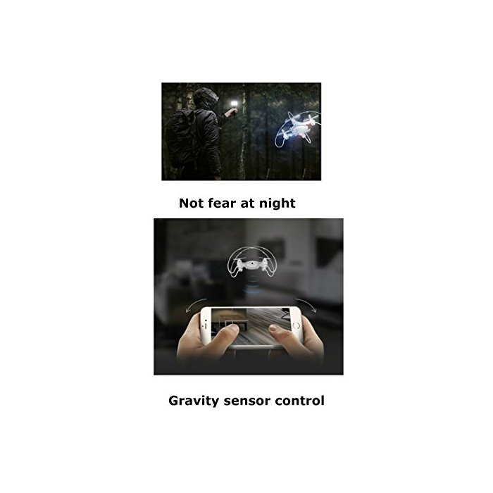 당신의 화면상의 3D FPV리얼 타임 전송 디스플레이:0.3MP를 장비 한 카메라와 WiFi FPV비디오는,비디오가 기록 되고 있는 휴대폰상의 어플리케이션에 스트리밍 됩니다.비디오 픽셀은 640 * 480,픽쳐 픽셀은 720 * 576입니다.WiFi FPV는,항상 조금의 비디오 지연이 어느(있는) 때문에,사용하는 것은 어렵다고 되어 있습니다. 이것은,스로틀을 안정에 유지하는 quad《고푸타》에 표고 유지를 포함시키는 것에 따라 극복됩니다.스로틀과 싸우는 것은 아니고, 움직이고 있다 방향으로 집중하는 것 를 할 수 있습니다.