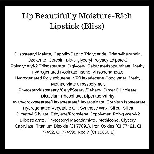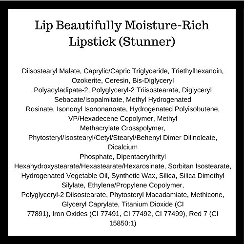 -. Binding : Misc. -. Brand : Christie Brinkley Authentic Beauty -. Feature : LIP BEAUTIFULLY MOISTURE-RICH LIPSTICK is a non-feathering, no-fade formula developed to pamper lips / ULTRA-MOISTURIZING formula that quenches lips with hydration and saturates lips with color / INCREDIBLE color payout for extraordinary and even coverage / DELIVERS superb, single-stroke color that creates a fuller lip illusion and even coverage / HYDRATES lips, keeping them supple and smooth -. IsAdultProduct : 0 -. Label : Christie Brinkley Authentic Beauty -. Manufacturer : Christie Brinkley Authentic Beauty -. ProductGroup : Beauty -. ProductTypeName : BEAUTY -. Publisher : Christie Brinkley Authentic Beauty -. Studio : Christie Brinkley Authentic Beauty -. Title : Christie Brinkley Authentic Beauty Lip Beautifully Moisture-Rich Lipstick, 0.14 oz