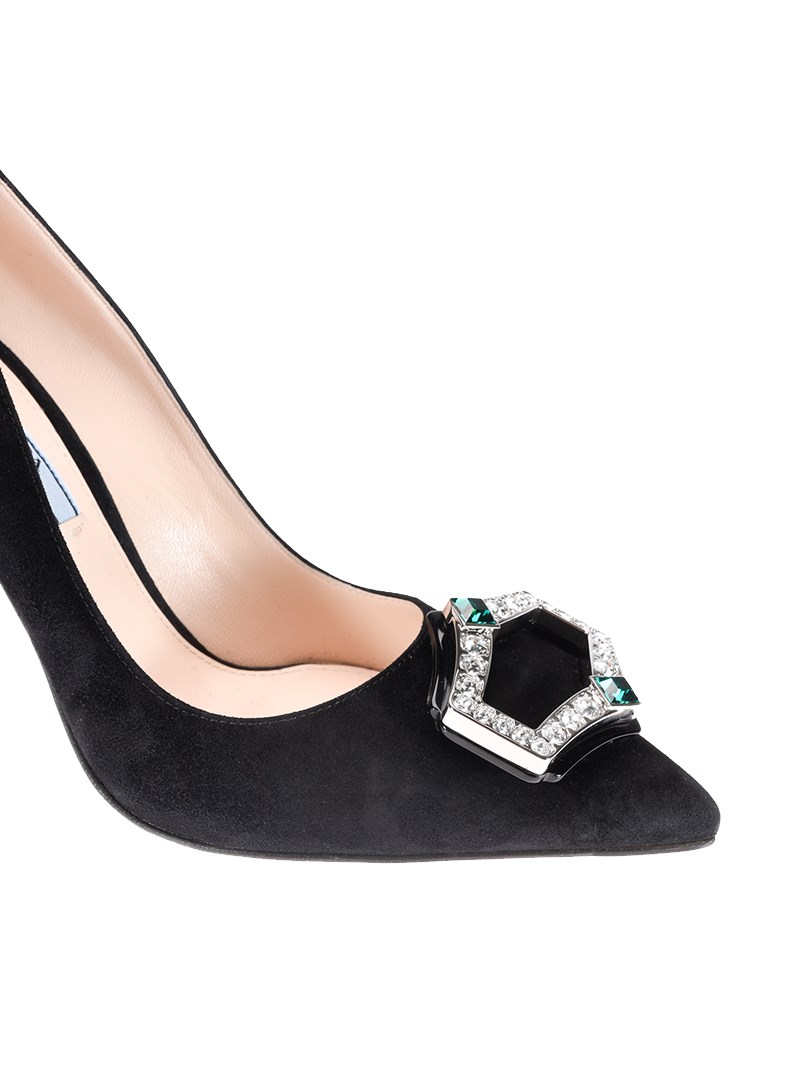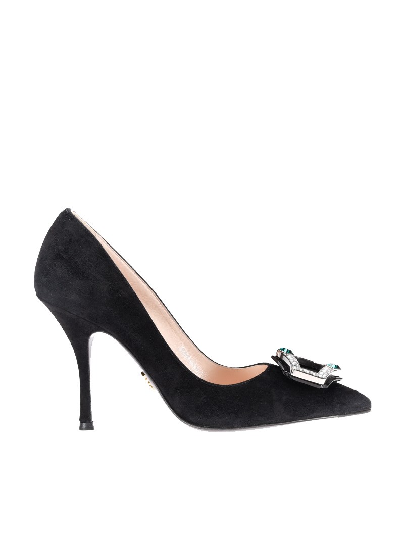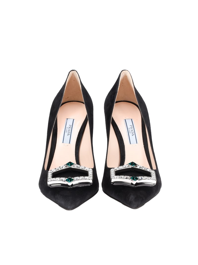 Suede pumpsColour: blackRhinestone insertsLeather outsole