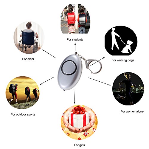 - 120DB SUPER LOUD: Simply pull the pin out, this ear-piercing alarm will activate for making a 120DB continuous panic sound for up to 1 hour, which can spread in a very wide area. It can help you get the maximum attention of police and other people. And the pin is still connected to the alarm body when pulled out, so it will not be lost.