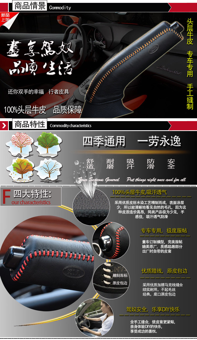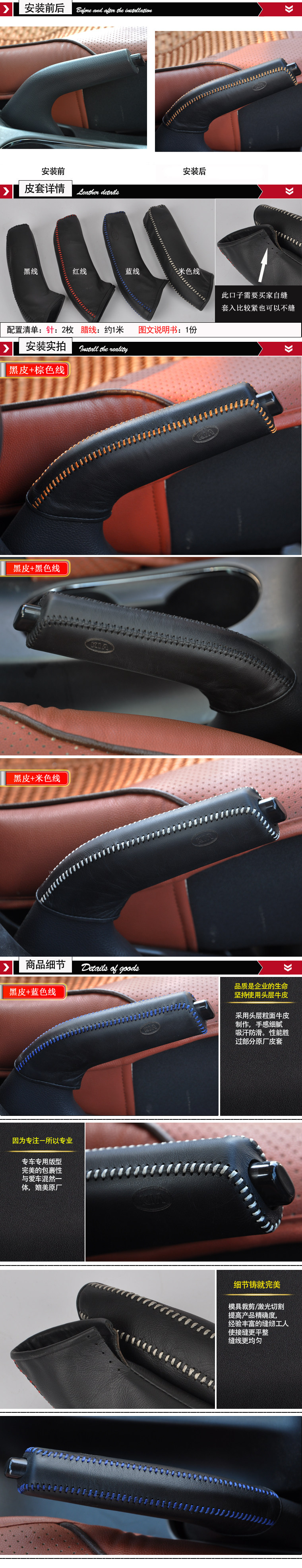 This hand brake sleeve for Kia K3 models, the use of the first layer of leather full hand-stitched, the bottom of the reservation need to buy a child from the mouth, such as the set of tight can not sew, leather for a long time there will be a certain degree of ductility, such as There is loose and then suture hole is also OK.