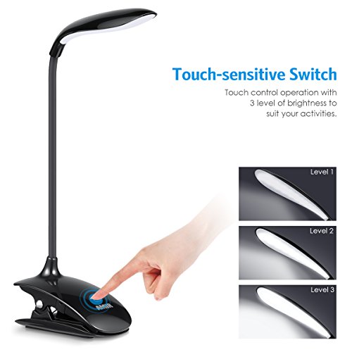 Amir 16 LED Rechargeable Book Light, Touch Sensitive Table Reading Light, 3-Level Dimmable Eye Care, USB Flexible Clip-on Desk Lamp for readers, Kids, Children, with 105 cm USB Cable
