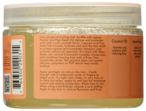 Studio : SheaMoisture Publisher : SheaMoisture Binding : Health and Beauty Product Description Our all-natural coconut styling souffle with agave nectar flax seed oil defines and promotes curls, with a soft, smooth after-feel. coconut and flax seed oils nourish and huydrate hair, seal the hair shaft to protect against exernal pollutants and assist natural oil retention. Our original natural humectant complex of agave nectar,coconut oil, glycerin and shea butter moisturizes,conditions and boosts shine without fizz. 0