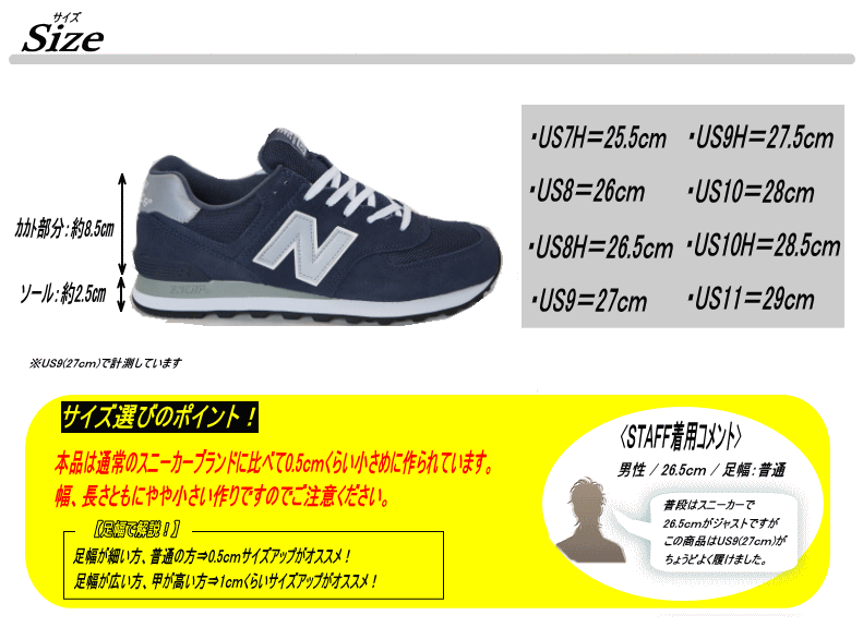 | サイズ | 作り⇒やや小さめ 【サイズ選びのポイント!】 足幅が細い方、普通の方⇒0.5cmくらいサイズアップがオススメ! 足幅が広い方、甲が高い方⇒1.0cmくらいサイズアップがオススメ! |
