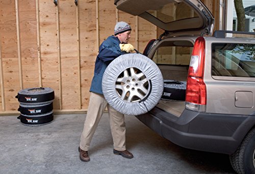 PROTECTS TIRES DURING OFF SEASON: Tire covers keeps your seasonal tires protected and your garage organized when tires are not in use; protects your clothing and car interior from grime during transportation