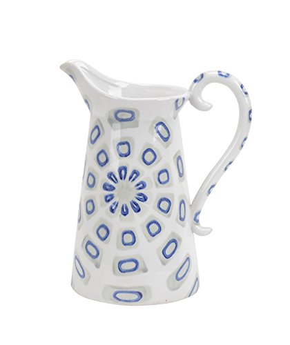 Sagebrook Home 12200-02 Decorative Ceramic Handled Pitcher, 9" x 6" x 11", White/Blue