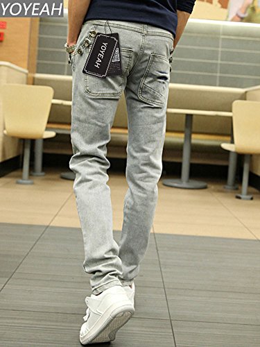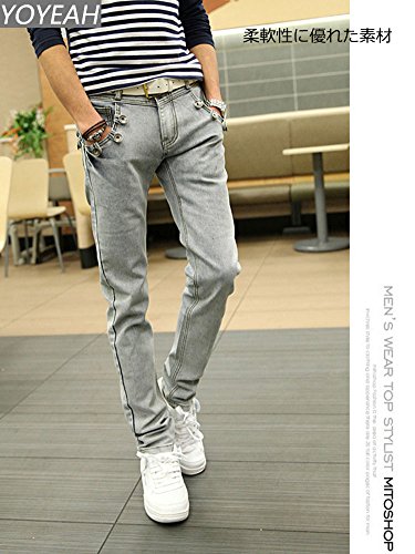 (# 것이나)YoYeah 미각(아름다운 다리) 슈퍼 스트레치 데님 팬츠 맨즈 스키니 팬츠 팬츠 데님 팬츠 스키니 gray 32