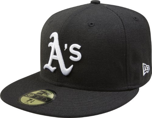 MLB OAKLAND ATHLETICS BLACK WITH WHITE 59FIFTY FITTED CAP, 7 5/8