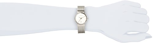 Product Description A watch that can be worn with the look of fine jewelry. The striped mesh band in silver connects to a slim round shiny silver case in stainless steel. The chrome dial features raised indicators and the date.