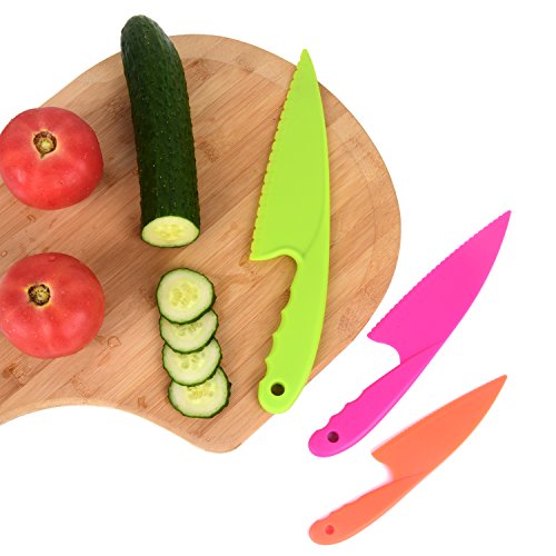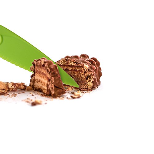 Real Cooking Tools For Kids This Plastic Knife set includes 1 large green 11.42" X 2.24"(29cm X 5.7cm), 1 medium purple 9.45" X 1.85" (24cm x 4.7cm) and 1 small red 7.09" X 1.46"(18cm X 3.7cm). This Nylon knife Set has serrated cutting edges which are safe to use, blunt tips and ergonomic handles making them easy for young children to use. Real Cooking Tools Not Toys Neylon Knives are excellent for preparing lettuce, salads or vegetables for both adults and kids. Will safely cut lettuce, fruit, vegetables, cheese, cake and more. The sturdy cutting edge will easily cut through heads of lettuce and other vegetables, will slice loaves of bread, cut that gbig birthday cake, slice those brownies into squares, and it will even make slicing your favorite cheese and easy task. You can even use it to spread frosting on cakes brownies! Safe Cooking Tools For Kids A Great Plastic Kitchen Knife set for outdoor use. Plastic Kitchen Knives are so much safer for outdoor use such as on-the-go needs like picnics, camping, boating and RV use. This Plastic kitchen knife set cuts most foods, but will not cut the skin. This will allow you to get the kids involved in the kitchen from an early age without fear of accidents, allowing them to develope essential life skills and a love of food and cooking! Learning to cook from an early age gives kids the ability to choose and cook healthier foods from an early age and as a result will enable them to enjoy a healthier lifestyle for the rest of their lives. 0 |