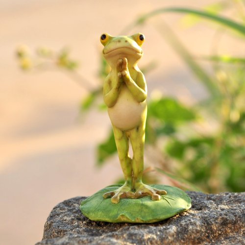 Top Collection Miniature Fairy Garden and Terrarium Yoga Frog on Lotus Leaf Namaste Statue
