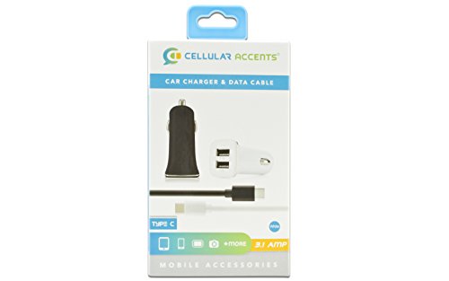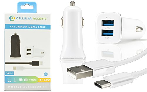 3.1 AMP 3100mAh 3.1 Type C USB Cable + Car Adapter for Galaxy S8 S8+, Moto Z, Z Force Z Play, Google Nexus 5X 6P Pixel, LG G5, G6, V20, ZTE Grand X Max 2, X 3, X 4, Zmax Pro, Z981 Plus more! (White)