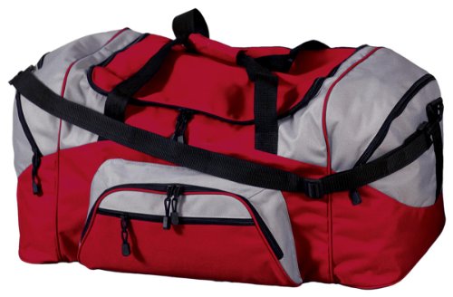 -. Title : Port & Company BG99 Colorblock Sport Duffel - Red/Grey - OSFA